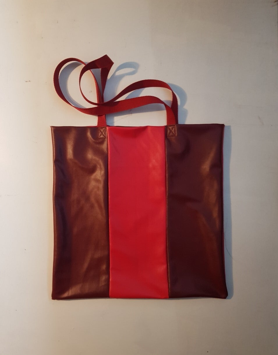 Totebag / schoudertas van soepel en toch sterk faux leer. De 3 kleuren van de ene kant zijn aan de andere kant gespiegeld. Ruim genoeg voor je laptop, boeken en/ of boodschappen. Handig dus en natuurlijk: très chic!